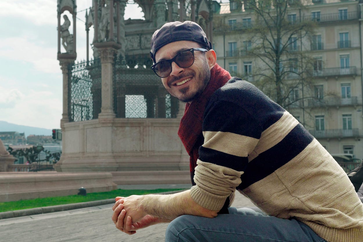 In Geneva, Switzerland, Bakhtiar, in his favorite quiet square, was reviewing his French lessons. Then I came with a camera. (In Afghan Farsi.)
